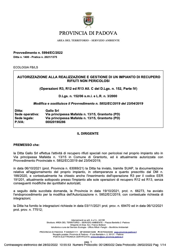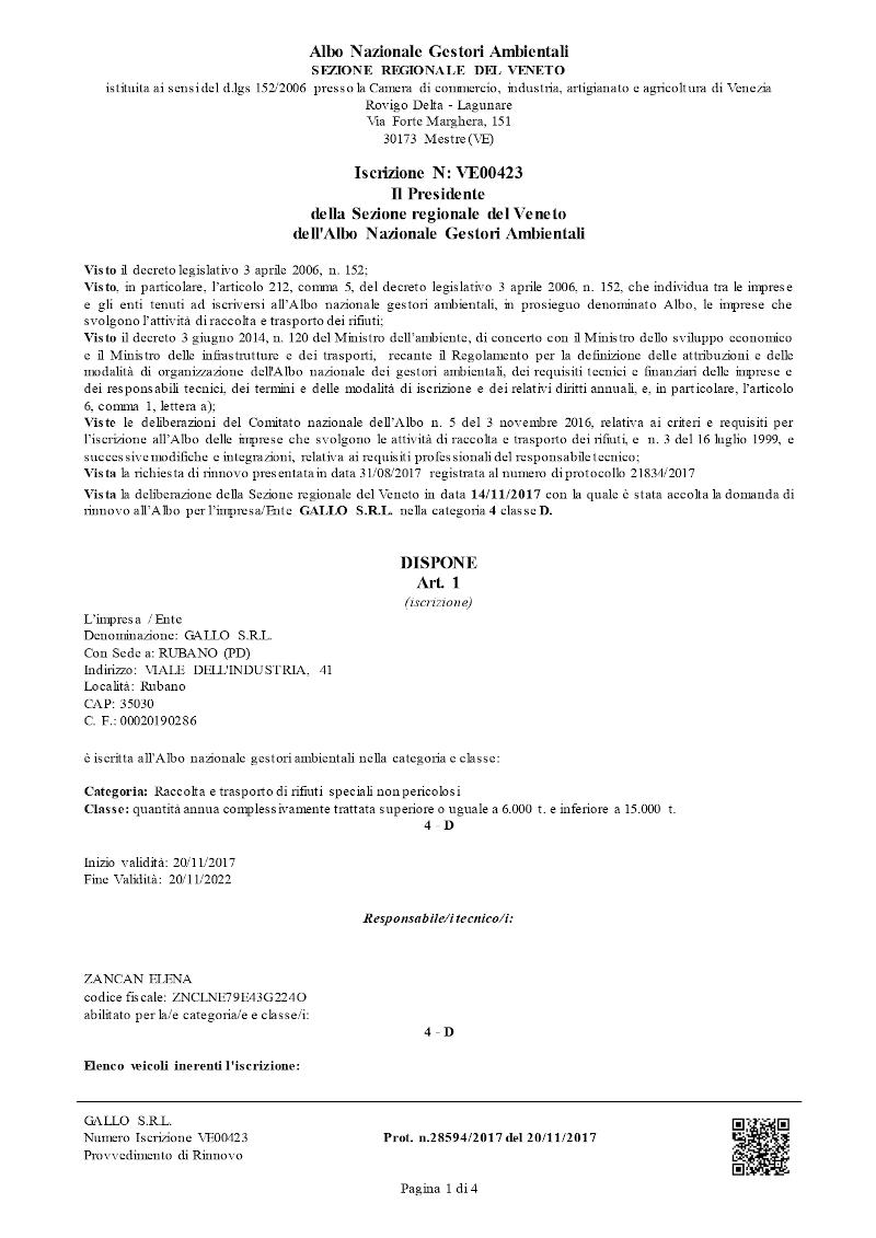 Certificato ISO 14001