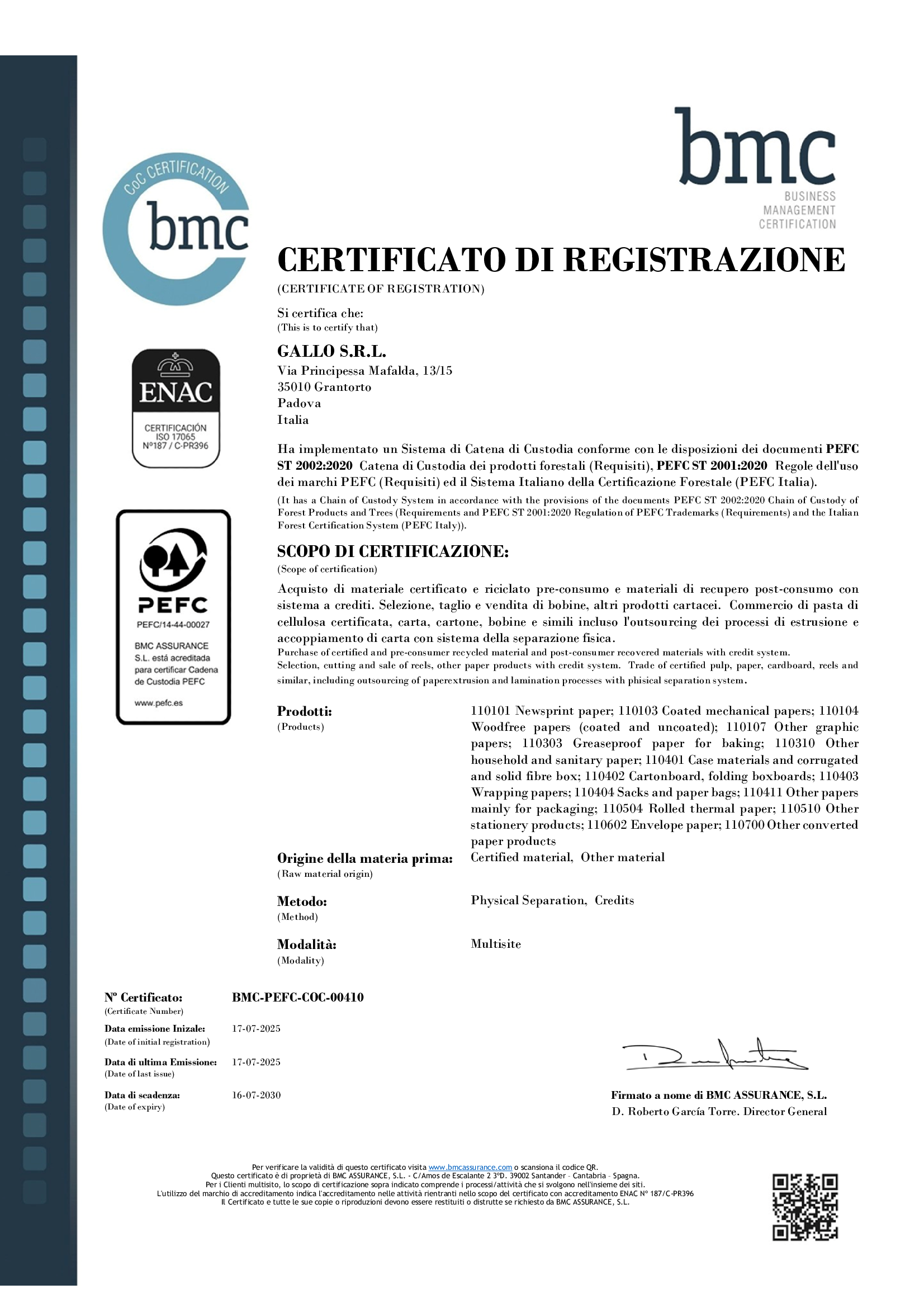 Certificato PEFC