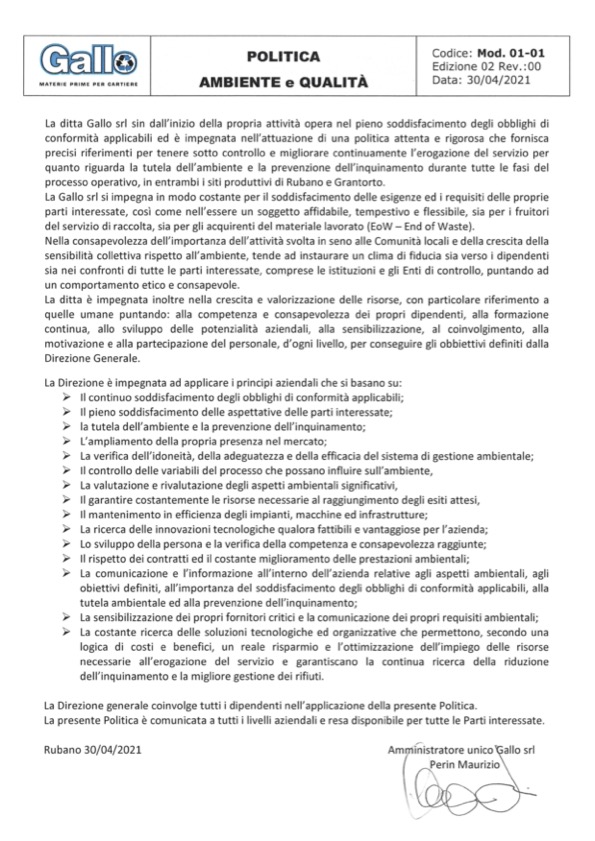 Politica Qualità e Ambiente